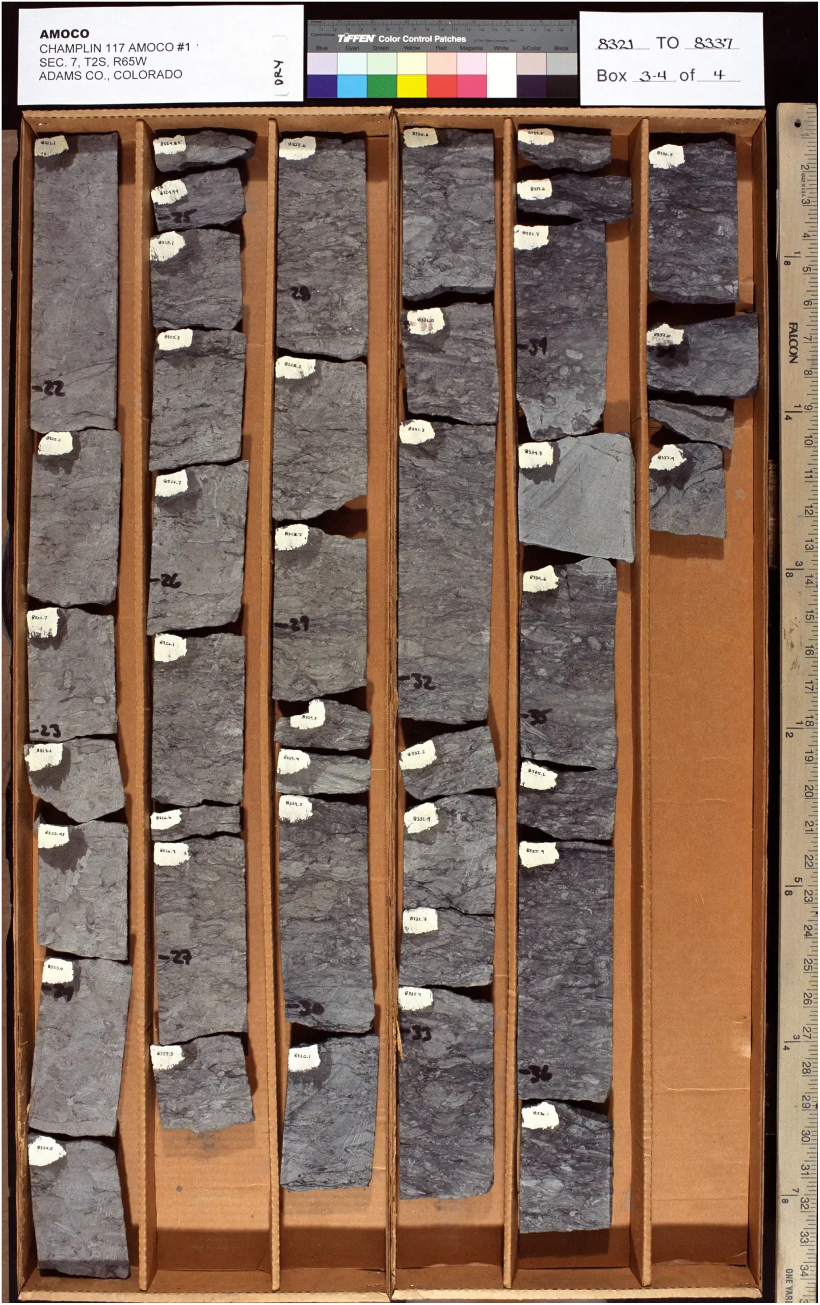 Well Name Champlin 117 Amoco #1 API 05-031-06388 RAW API 0503106388 Well Header Company Name Amoco Geologic Unit J Ss FM Code (USGS & Other) JSND Well Location County Denver State CO Country US Basin / Province Denver Field Third Creek TWN 2S RNG 65W SEC. 7 QTR-QTR SWSE Core Inventory Details Core Type Slab Numcore 1 Boxes 5 Boxes Interval 1-5 Box Size 30x3 Core Depth (Ft) 8300-8337 Champlin 117 Amoco #1 Lat / Long 39.88726 / -104.70387